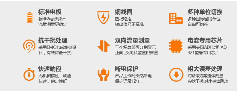 8.特殊介質測量(如漿液)采用高頻勵磁,消除雜波干擾