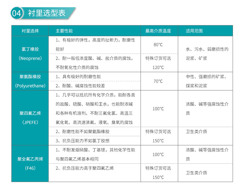 被測介質溫度:普通橡膠襯里:-20+60℃
