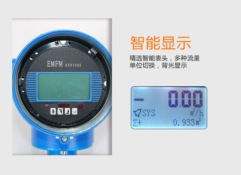 13.高清晰度背光中文LCD顯示,顯示累積流量、瞬時流量、流速、流量百分比等