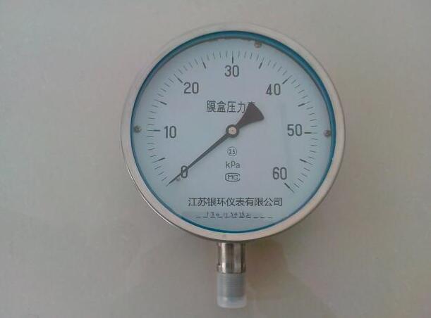 YHYE-60B/100B/150B不銹鋼膜盒壓力表可測量有一定腐蝕性的氣體或液體的微小壓力。儀表的外殼及導壓系統采用1Cr18Ni9不銹鋼材料。壓力表根據導壓系統及外殼均采用不銹鋼材料制成。應用于耐腐蝕要求較高的工藝流程中對各種氣體介質的微壓和負壓的測量。 不銹鋼膜盒壓力表參照原膜盒壓力表的結構特點而研制的具有耐腐蝕作用的微壓表。應用于鍋爐通風和氣體管道等設備上,在耐腐要求較高的工藝流程中測量各種氣體介質的微壓和負壓。準確度等級:2.5 工作位置、環境;儀表垂直安裝;工作環境-25~100℃.相對濕度不大于80%,并且周圍環境中有腐蝕儀表的有害氣體;