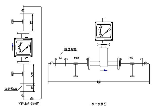 3、金屬管浮子流量計(jì)入口處應(yīng)有5倍管徑以上長度的直管段,出口應(yīng)有250mm直管段;