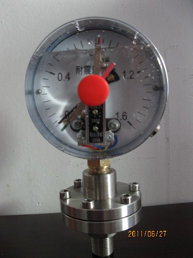 電接點耐震隔膜壓力表主要用于石油化工、制堿、化纖、染化、制藥、食品和制酪等工業部門生產過程中測量流體介質壓力之用
