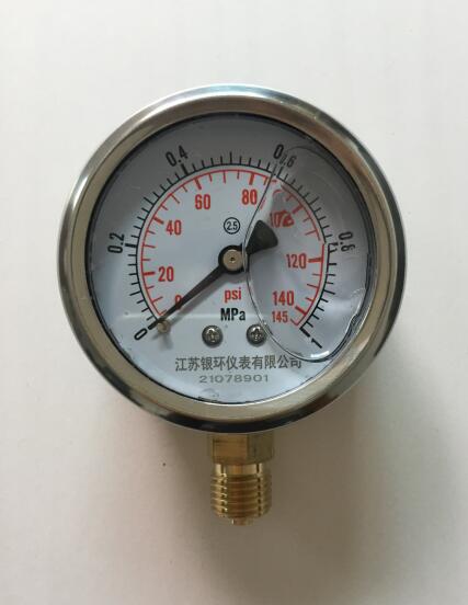 耐震壓力表表殼內有灌充液的機械指針式壓力表,或者于表殼內有灌充液并帶阻尼器的機械指針(或回轉標度盤)式壓力表。