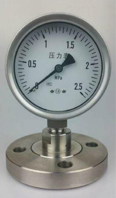 隔膜壓力表的耐蝕性可通過合適的選擇與測量介質接觸部分的隔膜,法蘭及密封墊圈的材料來保證。