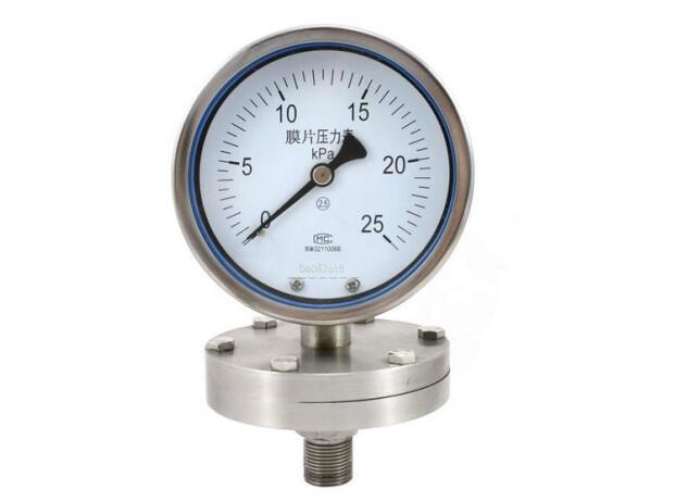 膜片壓力表能適用于測量強腐蝕、高溫、高粘度、易結晶、易凝固、有固體浮游物的介質壓力以及必須避免測量介質直接進入通用型壓力儀表和防止沉淀物積聚且易清洗的場合,應必須采用由隔膜隔離器與通用型壓力儀表組成一個系統的隔膜表。
