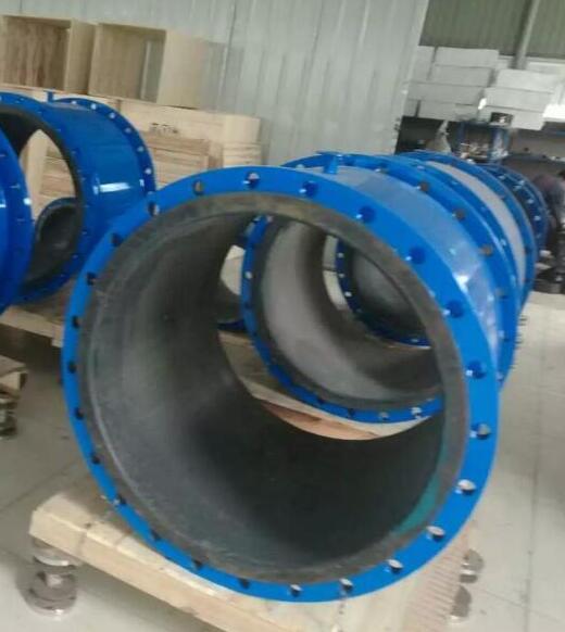 氯丁橡膠:氯丁橡膠適于DN300 以上大口徑傳感器,多用于測量水、污水、弱酸、弱堿介質流體。一般直接用膠片粘接貼附在不銹鋼導管內壁,通過硫化制成。這種工藝,橡膠襯里的表面粗糙度一般比較高,操作時應特別注意搭接縫處的平整,但相對粗糙度要低。用于小口徑的氯丁橡膠和EPDM 橡膠襯里,則較好使用模具加壓,貼附在導管內壁然后硫化,降低襯里表面粗糙度取決于模具芯棒的表面粗糙度和加壓及硫化工藝。