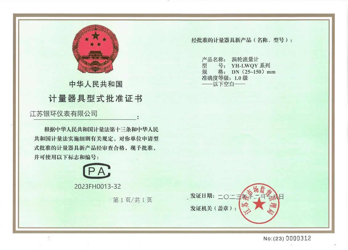 渦輪流量計生產許可